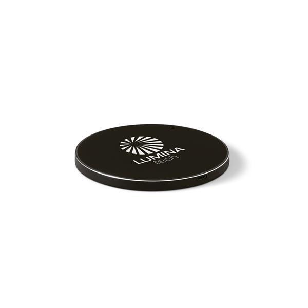 Carregador wireless super-rápido em ABS 100% reciclado e alumínio 100% reciclado. Com entrada USB-C e potência de carregamento máxima de 15W. Incluso cabo USB-C para carregar. Fornecido em caixa presente de papel kraft reciclado. Carregador: ø100 x 9 mm | Cabo: 1000mm