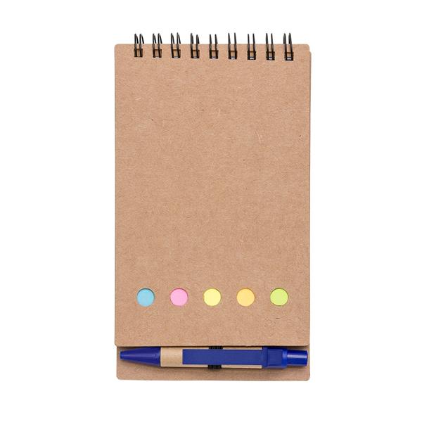 Bloco de anotações kraft com wire-o. Contém cinco blocos coloridos autoadesivos com aproximadamente 25 folhas, bloco amarelo autoadesivo com aproximadamente 25 folhas e bloco de folhas brancas pautadas com aproximadamente 70 folhas. Aco... Ver maisVer menos Altura : 15,5 cm Largura : 8,8 cm Medidas aproximadas para gravação (CxL): 10 cm x 8,5 cm – Caneta 0,6 cm x 3,5 cm Tamanho total aproximado (CxL): Caneta 8,6 cm x 1,2 cm Peso aproximado (g): 85