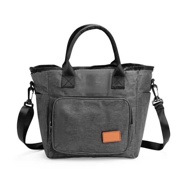 Bolsa térmica com capacidade de até 10 litros. Confeccionada em Oxford resistente à água, possui compartimento interno com revestimento térmico em PEVA e fechamento em zíper. Conta ainda com bolso frontal com plaquinha de couro sintético fixada com velcro, um par de bolsos laterais e duas alças fixas para transporte, além de uma alça transversal regulável com mosquetões para encaixe nas fivelas laterais da bolsa.