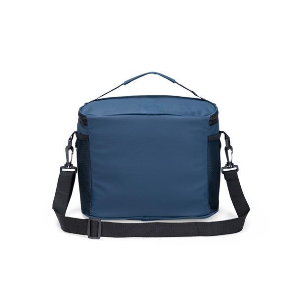 Bolsa térmica confeccionada em poliéster com revestimento impermeável em PVC de limpeza fácil e capacidade máxima de 12 litros. Possui camada interior em espuma branca e revestimento térmico em filme de alumínio, ideal para conservar a temperatura de alimentos e bebidas por mais tempo. Conta ainda com dois bolsos laterais em tela de nylon com elástico, alça superior de mão e alça transversal ajustável para facilitar o transporte.
