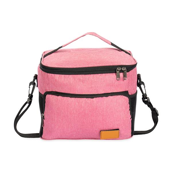 Bolsa térmica confeccionada em Oxford resistente à água, fechamento em zíper, alça de nylon na tampa e capacidade de até 8 litros. Possui revestimento térmico em PEVA atóxico, além de compartimento frontal com plaquinha de couro sintético fixada por velcro e dois bolsos laterais em tela de tecido respirável com elástico. Acompanha alça transversal removível e ajustável. Altura : 20 cm Largura : 23,5 cm Profundidade : 18,5 cm Peso aproximado (g): 279