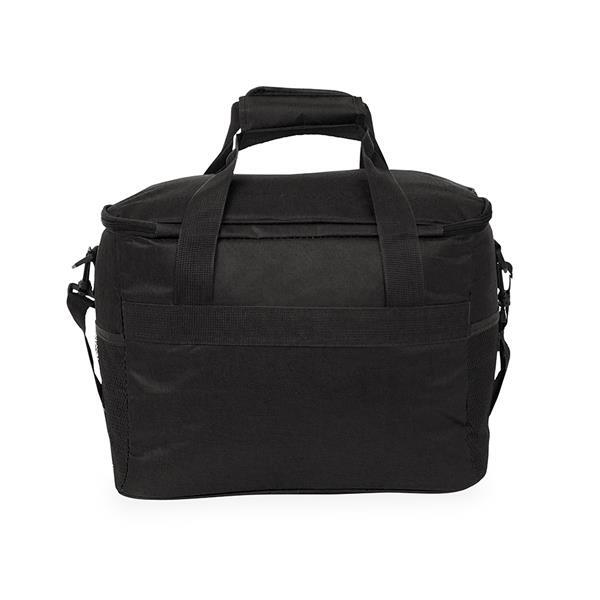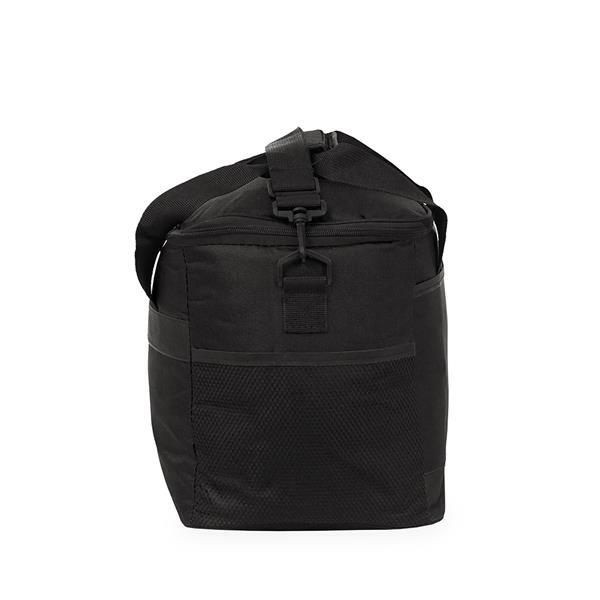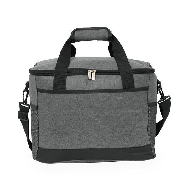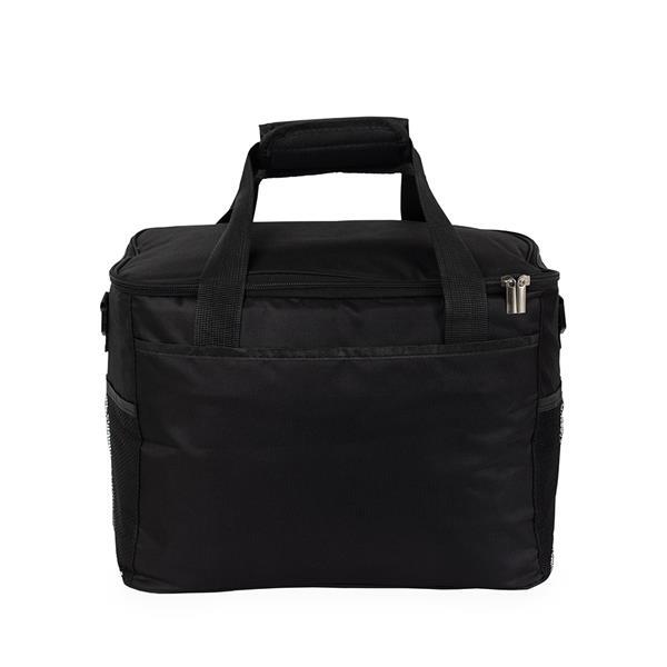 Bolsa térmica confeccionada em Oxford 600D impermeável com camada interna acolchoada, fechamento em zíper e capacidade máxima de 25 litros. Possui revestimento térmico em PEVA antivazamento, além de duas alças fixas em nylon com suporte de juntura e três bolsos externos, incluindo dois em malha. Acompanha alça transversal ajustável.