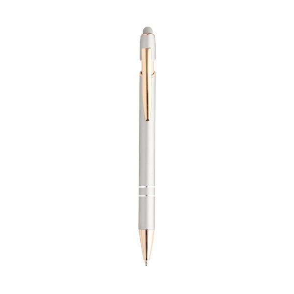 Caneta metálica touchscreen com acionamento por clique, carga esferográfica azul 1.0mm. Largura : 1,5 cm Comprimento : 14,1 cm Peso aproximado (g): 18