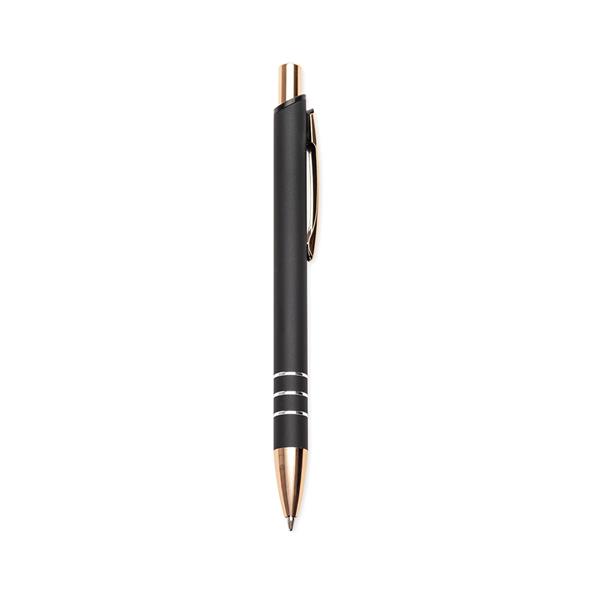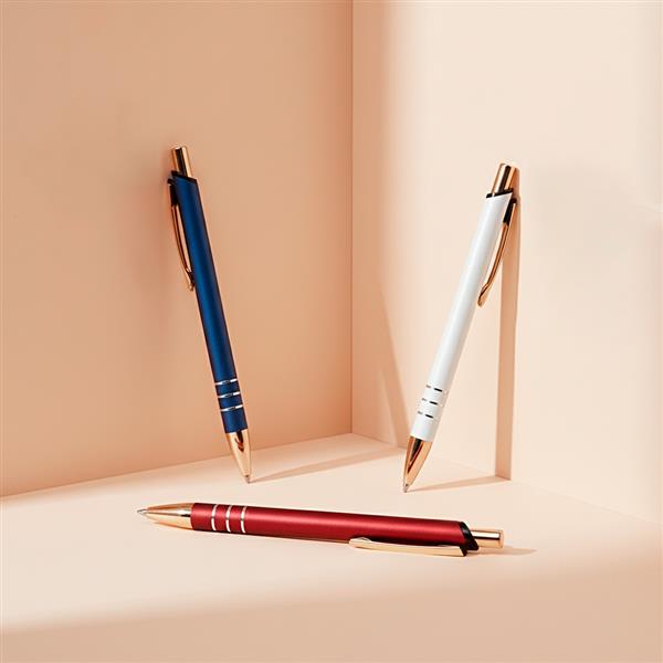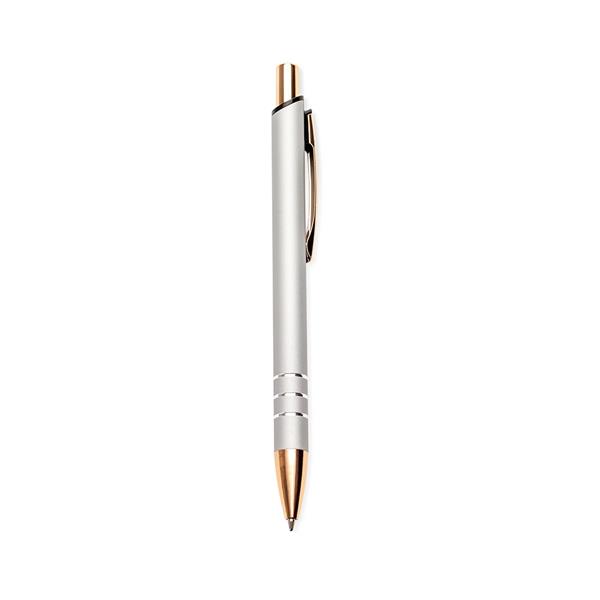 Caneta metálica com acionamento por clique e carga esferográfica azul de 1,0mm, oferecendo uma pegada leve para uma escrita mais precisa. Largura : 1,5 cm Comprimento : 14,2 cm Peso aproximado (g): 16