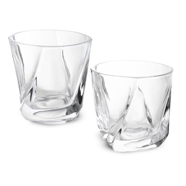 Kit drink contendo 2 copos de vidro (200ml cada), 1 pinça para gelo e 6 pedras de granito para gelo, acondicionado em caixa presenteável.