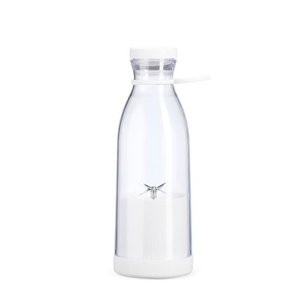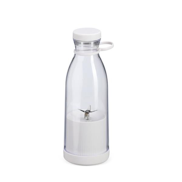 Garrafa plástica com base misturadora para frutas com capacidade máxima de 380 ml. Possui base rosqueável com lâminas em inox acionadas por botão, permitindo a mistura de frutas com líquidos, além de tampa rosqueável e alça removível em silicone para transporte. Observação: Para que o triturador funcione corretamente, o volume de frutas e líquidos não deve ultrapassar 300ml. Altura : 22,4 cm Largura : 7,9 cm Circunferência : 23,3 cm Peso aproximado (g): 259