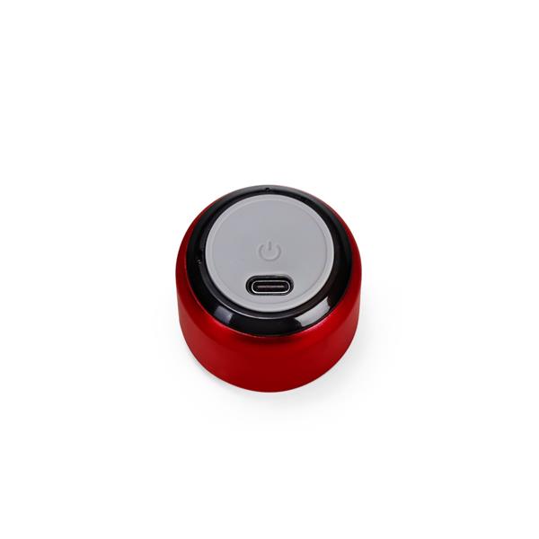 Caixa de som com estrutura em metal e plástico. Possui base emborrachada com botão liga/desliga, conexão Bluetooth 5.0, autonomia de reprodução estimada de até 2 horas e meia e entrada USB-C para carregamento. Acompanha cordão de nylon e cabo USB-C. Altura : 3,6 cm Largura : 4,4 cm Circunferência : 14 cm Peso aproximado (g): 74