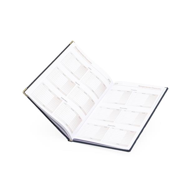 Agenda diária 2026 de couro sintético. Contém fita de cetim marca página, dados pessoais, calendário de 2025 à 2027, mapas, telefone Úteis, planejamentos, códigos do serviço DDI e DDD. Altura : 27,7 cm Largura : 20 cm Espessura : 1,4 cm Peso aproximado (g): 419