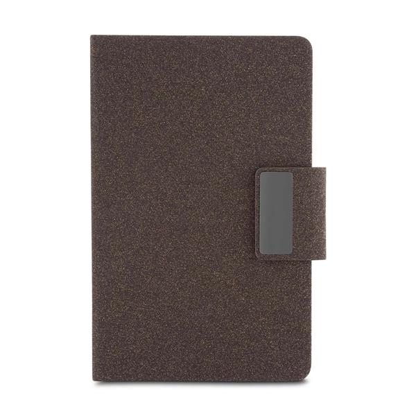 Caderno de anotações com capa em PU e fibra de chá ou café, 80 folhas 70 g/m², engate para caneta com fechamento magnético e placa de metal, não acompanha caneta. Peso do Produto:0,236kg Dimensão do Produto: 20,7x13,2cm Embalagem: Plástica