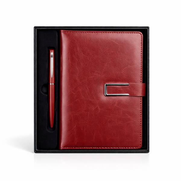 Kit executivo composto por dois itens: uma caderneta e uma caneta. A caderneta possui capa em couro sintético, fecho magnético com detalhe metálico na aba, marca páginas em fita de cetim e cerca de 96 folhas marfim pautadas e espaço para assinalar dias da semana e datas numéricas. A caneta metálica conta com acionamento por rotação e carga esferográfica azul de 1,0mm. Acompanha caixa em papelão com berço em plástico para guardar os itens do conjunto. Altura : 22,3 cm Largura : 19,7 cm Profundidade : 2,5 cm Peso aproximado (g): 492