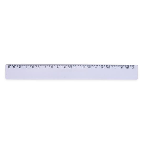 Régua plástica de 20 centímetros com verso liso. Largura : 2,4 cm Espessura : 0,2 cm Comprimento : 20,8 cm Peso aproximado (g): 8