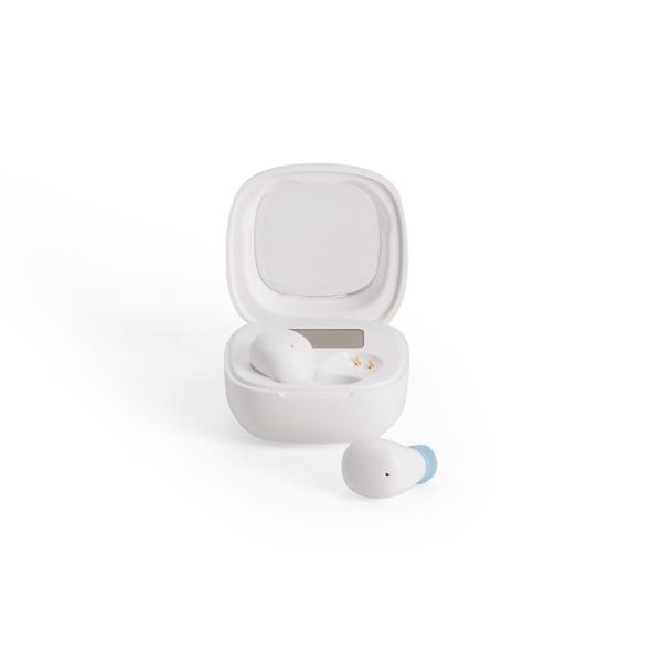 Fones de ouvido sem fio com estrutura em plástico, ponteiras emborrachadas e conexão via Bluetooth 5.4, elementos que proporcionam uma experiência de alta qualidade durante o uso. Acompanha estojo de carregamento com visor de percentual da carga total, duas ponteiras extras e um cabo USB-C. Altura : 4,2 cm Largura : 4,2 cm Espessura : 3 cm Peso aproximado (g): 25
