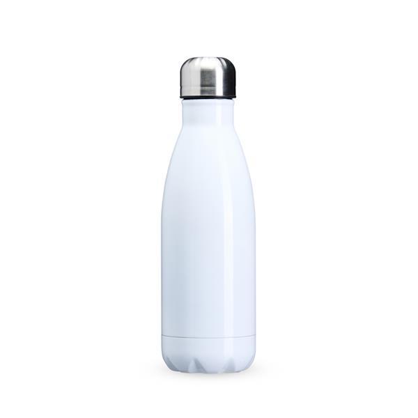 Garrafa 650 ml em inox com tampa rosqueável e pintura brilhante. Obs.: Não é um modelo térmico.