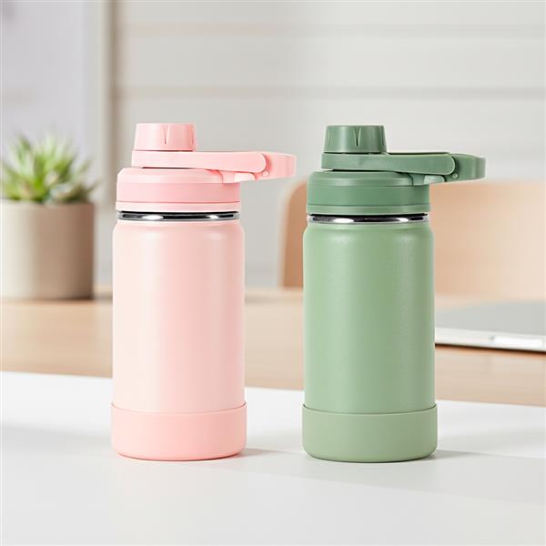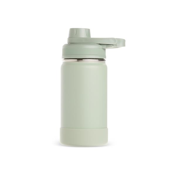 Garrafa térmica em inox, pintura eletrostática e capacidade para até 350 ml. Conta com estrutura de parede dupla e vedação a vácuo, permitindo conservar a temperatura de líquidos por mais tempo. Possui tampa rosqueável com protetor para o bocal e alça fixa para facilitar o transporte. Acompanha protetor para a base em silicone. Altura : 18,2 cm Largura : 10 cm Circunferência : 23 cm Peso aproximado (g): 238