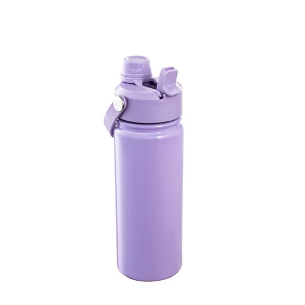Garrafa térmica em aço inox 304 e capacidade para até 600 ml. Apresenta estrutura de parede dupla e vedação a vácuo, oferecendo a conservação da temperatura de líquidos por mais tempo. Possui tampa rosqueável feita em plástico com proteção para o bocal, bico flip, canudo interno removível e alça fixa para transporte. Altura : 23,5 cm Largura : 8,3 cm Circunferência : 23,3 cm Peso aproximado (g): 303