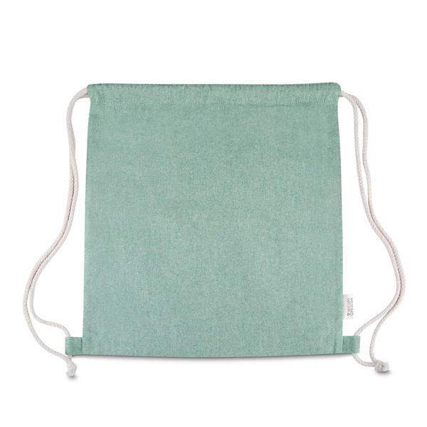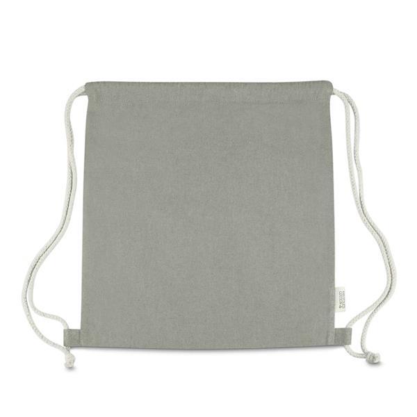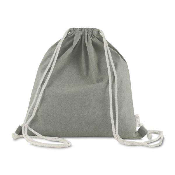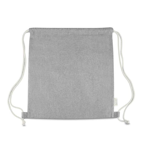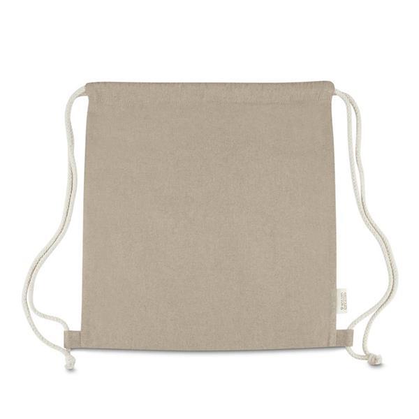 Sacola/mochila confeccionada em algodão mescla reciclado, gramatura 140g/m², com alças em algodão cru.