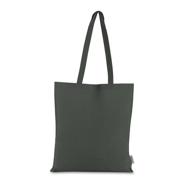 Bolsa confeccionada em algodão sólido reciclado, com gramatura de 140g/m², dimensões de 42 x 38 cm e alça de comprimento fixo medindo 33 cm. Dimensão Produto: 42x38 cm (AxLxP) Peso do Produto: 0,068kg
