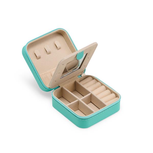 Organize anéis, brincos, colares, outros acessórios e o que mais quiser no nosso porta-joias com espelho. Suas divisórias são bem marcadas e cabem diversos itens, o espelho além de permitir dar aquela olhada no visual, também funciona como uma divisória entre o compartimento superior e inferior interno. Uma surpresa em espaço compacto! Altura : 4,7 cm Largura : 9,6 cm Comprimento : 9,9 cm Peso aproximado (g): 110