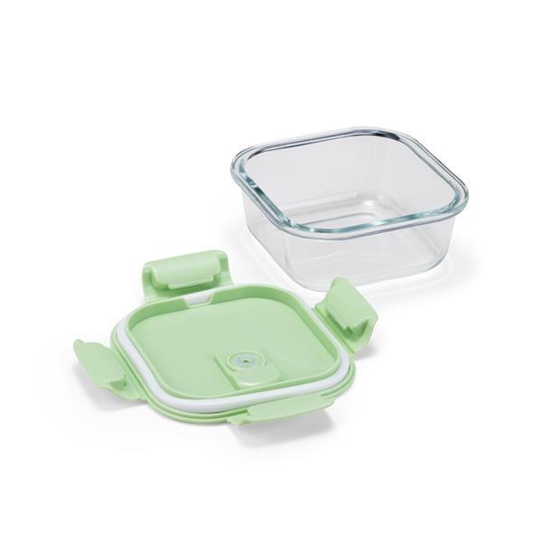 Marmita em vidro borossilicato com capacidade para até 450 ml. Possui tampa hermética em plástico polipropileno (PP) livre de BPA com travas laterais e válvula de respiro para facilitar a abertura. Altura : 6,1 cm Largura : 15 cm Profundidade : 10 cm Peso aproximado (g): 363