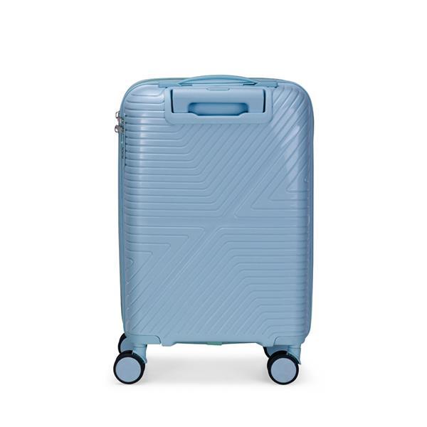 Mala de viagem em plástico resistente, fechamento em zíper e capacidade para até 30 litros. Possui dimensões compatíveis com o padrão da ANAC, compartimento interno com fechamento em zíper e bolso superior em tela de malha, além de cinta compressora no lado oposto para organização de objetos. Conta ainda com alça de mão, quatro rodinhas com giro em 360 graus, puxador com ajuste de nível e alça plástica, além de cadeado numérico TSA. Acompanha placa em metal para personalização.