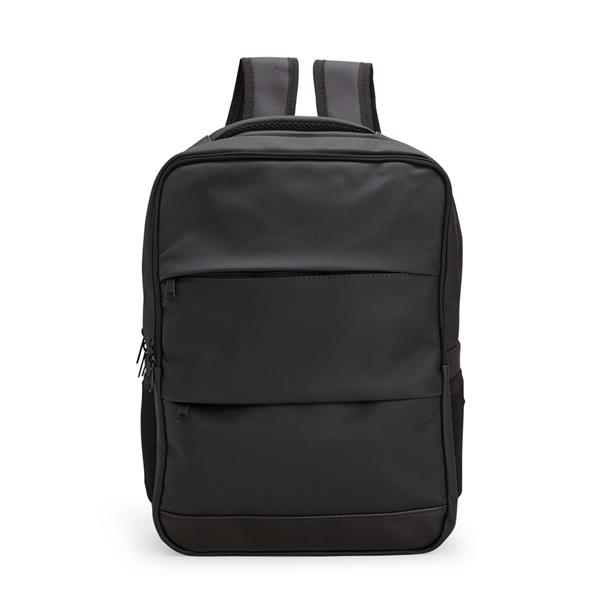 Mochila confeccionada em couro sintético com capacidade máxima de 20 litros. Possui compartimento principal com divisória em malha para notebooks de até 15,6 polegadas. Conta ainda com três compartimentos frontais em tamanhos diferentes, além de dois bolsos em tecido respirável, o mesmo material de revestimento das alças para as costas e alça superior de mão.