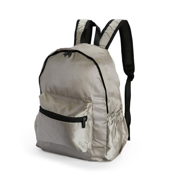 Mochila dobrável confeccionada em poliéster impermeável, fechamento em zíper e capacidade máxima de 18 litros. Pode ser transportada como um estojo compacto quando dobrada e, ao ser desdobrada, apresenta um compartimento interno com divisória para notebook de até 14 polegadas. Conta ainda com bolso frontal com zíper e dois bolsos laterais com elástico, uma alça superior em nylon e duas alças para as cosas com revestimento em espuma respirável. Altura : 38 cm Largura : 30 cm Profundidade : 13 cm Peso aproximado (g): 163