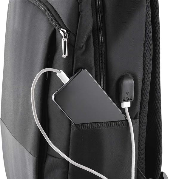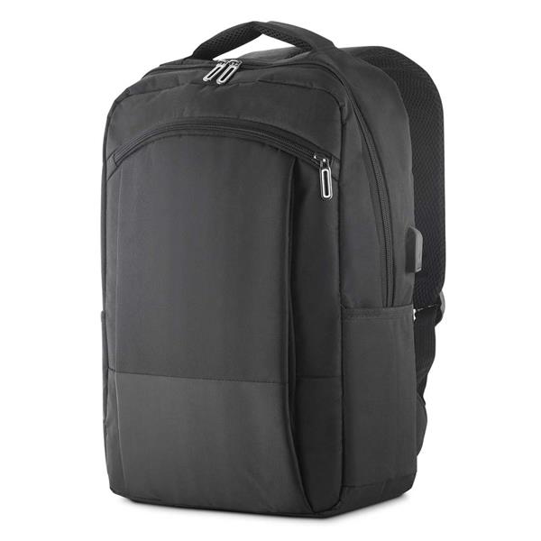 Mochila para notebook em tecido poliéster 500D e interior em 210D. Parte externa: Dois bolsos frontais com zíper, dois bolsos laterais. Conector USB. Alça de mão e alça de ombro acolchoada. Parte interna: Compartimento acolchoado para notebook até 15.6" e divisórias para melhor organização. Dimensão Produto: 47x32x18cm (AxLxP) Peso do Produto: 0,432kg