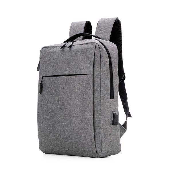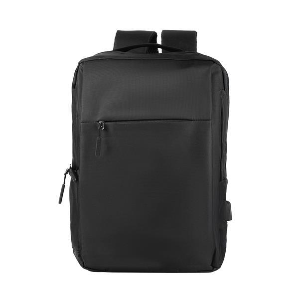 Mochila para notebook em tecido poliéster 600D e interior em 210D. Parte externa: 2 Bolsos frontais com ziper; 1 Bolso lateral; Alça de mão e ombro acolchoadas; Conector USB externo na lateral; Engate para mala de viagem. Parte interna: Compartimento acolchoado para notebook de 39x27cm; Tamanho total do Notebook - 15,6¨ 2 Porta Objetos; 2 Porta Canetas.
