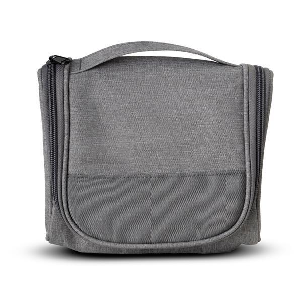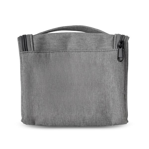 Necessaire confeccionada em poliéster 300D no material externo e poliéster 210D/Mesh no material interno. Fechamento por zíper e divisórias internas. Capacidade de 1,7 Litros.