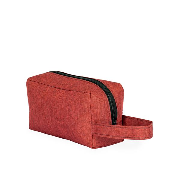 Nécessaire resistente à água feita em poliéster com mescla de PVC. Conta com fechamento em zíper e alça de mão localizada na lateral. Altura : 10,5 cm Largura : 21 cm Profundidade : 9 cm Peso aproximado (g): 78