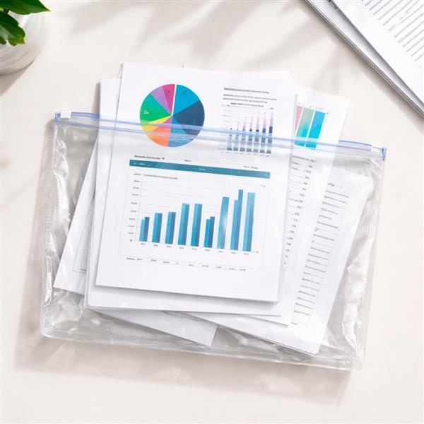 Pasta confeccionada em PVC cristal transparente com fechamento tipo zip zap deslizante.