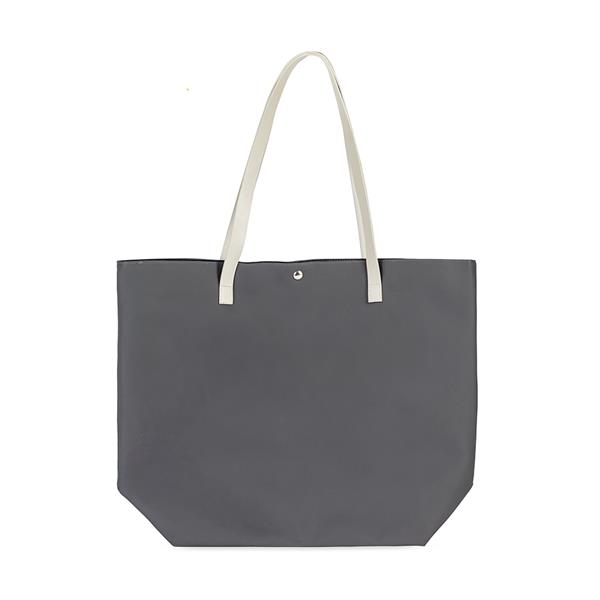 Sacola confeccionada em couro sintético à base de PVC com par de alças de costura externa e botões magnéticos metálicos para fechamento. Possui revestimento interno em poliéster e bolso compacto com fechamento em zíper. Altura : 34 cm Largura : 44 cm Profundidade : 14 cm Peso aproximado (g): 259