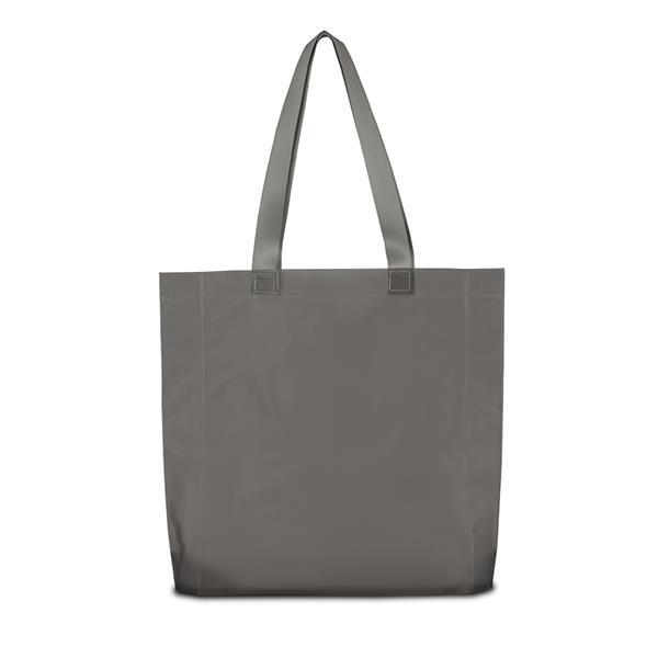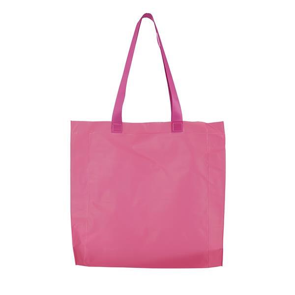 Sacola confeccionada em PVC All Clean 030 soldado com alças lisas em cetim. Altura : 40 cm Largura : 44 cm Profundidade : 9,5 cm Peso aproximado (g): 140