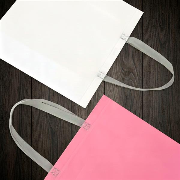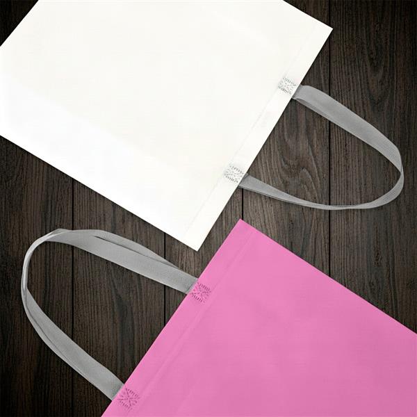 Sacola em TNT laminado impermeável e costura termosselada.
