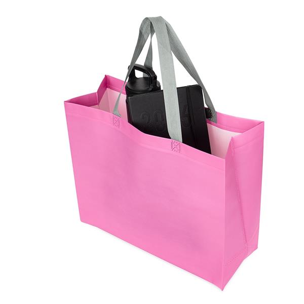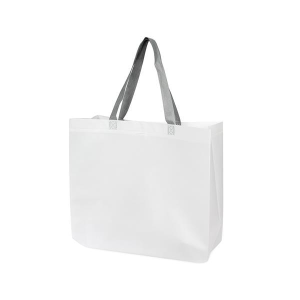 Sacola em TNT laminado impermeável e costura termosselada. Altura : 32 cm Largura : 40 cm Profundidade : 15 cm Peso aproximado (g): 57