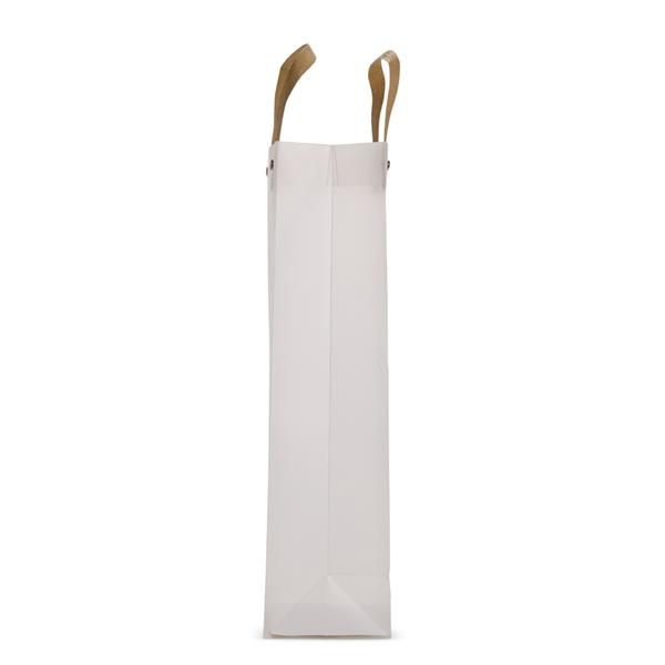 Sacola plástica com formato retangular, acabamento fosco e alças em papelão fixadas por botões metálicos. Altura : 35 cm Largura : 12 cm Profundidade : 9 cm Peso aproximado (g): 33