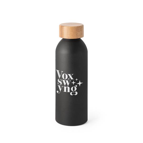 Squeeze em alumínio com acabamento mate e tampa em bambu. Capacidade até 550 ml. Caixa branca 94656 vendida opcionalmente. Certificação EU Food Grade. A cor e o resultado da impressão nos materiais naturais pode variar entre produtos. ø65 x 197 mm