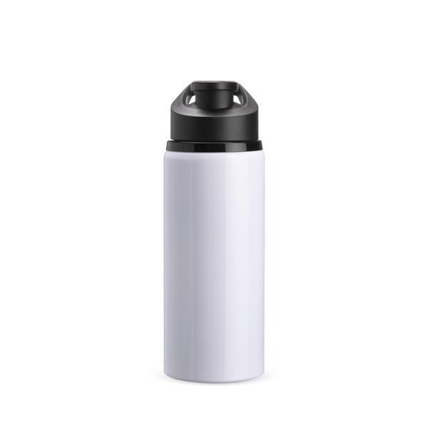 Squeeze em alumínio com pintura de acabamento brilhante e capacidade máxima de 650 ml. Possui tampa rosqueável em plástico com alça fixa e tampa protetora para o bocal.