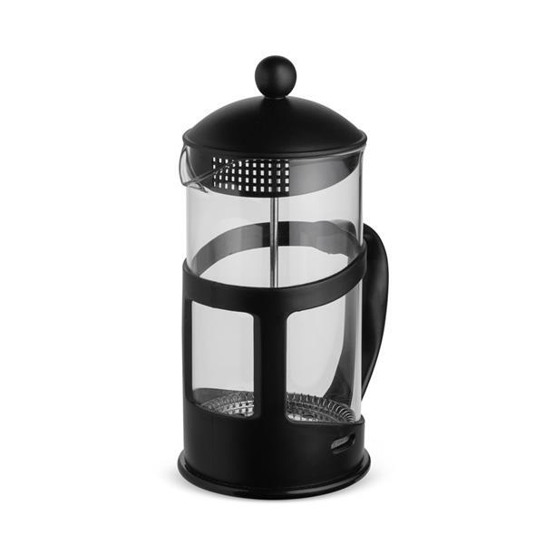 Cafeteira tipo pensa francesa em vidro com capacidade para até 1 litro, além de alça e detalhes em plástico. Possui tampa em plástico com êmbolo e tela em inox. Altura : 23 cm Largura : 14 cm Diâmetro : 9,5 cm Peso aproximado (g): 419