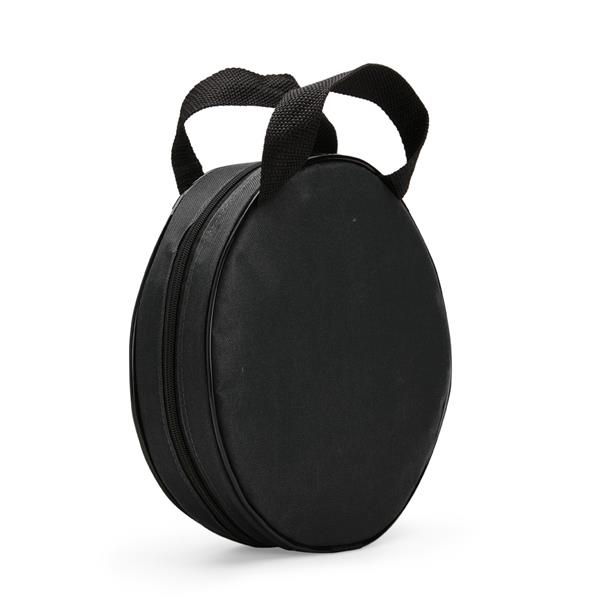 Bolsa porta-pratos confeccionada em poliéster 600 impermeável, com fechamento em zíper e compartimento interno que inclui bolso em tela de nylon. Possui duas alças de nylon para transporte.