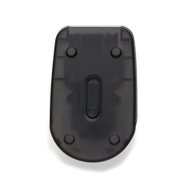 Porta cartão plástico formato mouse com três funções: porta cartão, porta clips(acompanha 10 clips) e limpador de teclado. Compartimento do clip plástico colorido com tampa, possui imã interno. Para utilizar o limpador basta movimentar o “botão” na parte inferior da peça. Possui borrachas anti-deslizantes na parte inferior. Medidas aproximadas para gravação (CxL): 3 cm x 4 cm Tamanho total aproximado (CxL): 9,2 cm x 5,7 cm Peso aproximado (g): 40