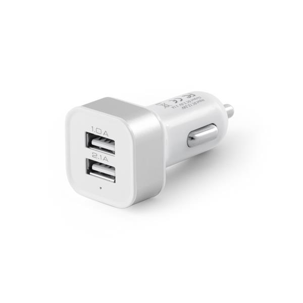 Adaptador de isqueiro para carro. ABS e alumínio. Com 2 saídas 5V/1-2.1A. 31 x 31 x 63 mm