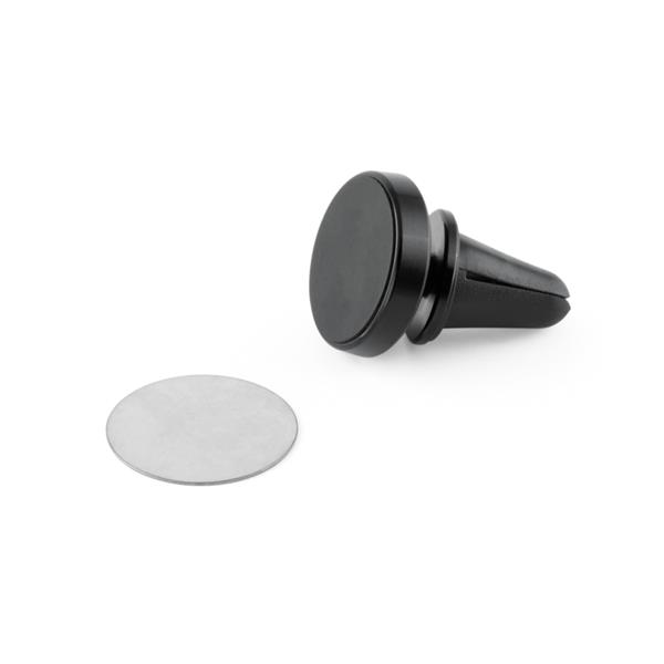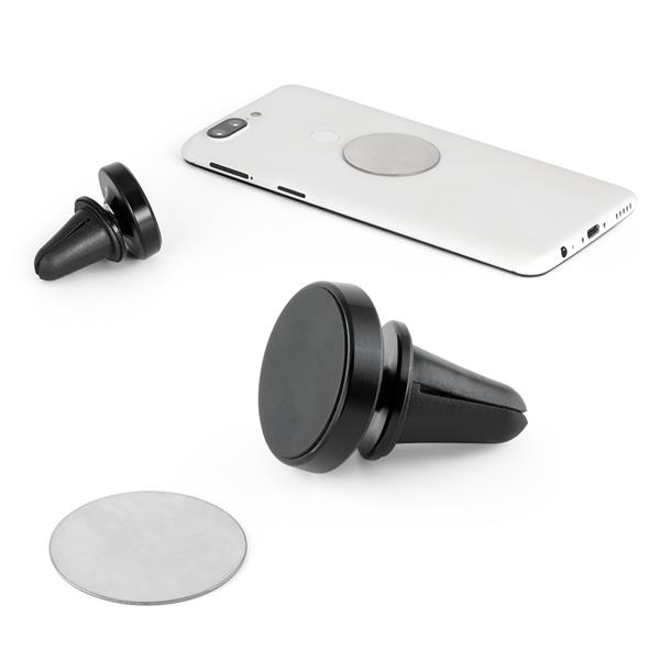 Porta celular para carro. Alumínio. Peça magnética de metal com estrutura giratória de 360º, permitindo adaptar a posição do celular. Superfície autocolante para aderir ao celular. ø35 x 44 mm