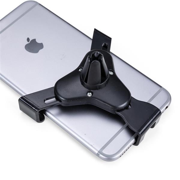 Suporte veicular plástico para celular. Suporte triangular com hastes que se adequam ao celular, com o peso do aparelho a haste inferior começa a descer e automaticamente as hastes laterais começam a fechar. Parte traseira com prendedor emborrachado para fixar saída de ar do veiculo. Medidas aproximadas para gravação (CxL): 1,2 cm x 2,5 cm Tamanho total aproximado (CxL): 8,8 cm x 9,1 cm x 5,5 cm Peso aproximado (g): 24