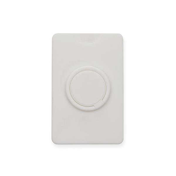 Adesivo porta cartão para celular com anel de suporte giratório acoplado, contém verso adesivado. Altura : 8,8 cm Largura : 5,6 cm Espessura : 0,8 cm Medidas aproximadas para gravação (CxL): 2,5 cm x 2,5 cm Peso aproximado (g): 19