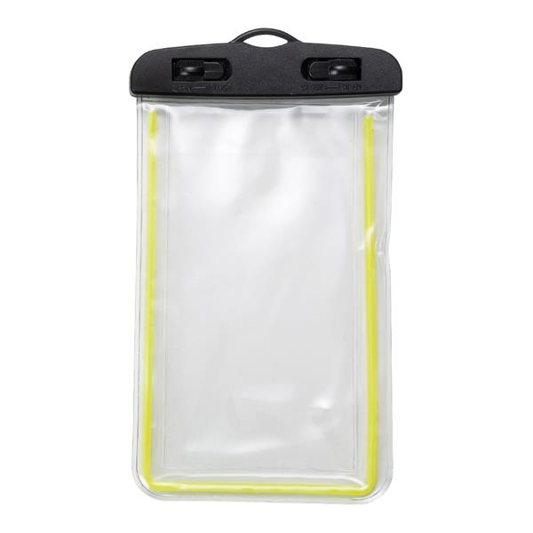 Capa impermeável transparente para celular. Possui contorno colorido na capa, suporte plástico superior com fivelas rotatórias(basta rotacioná-las para abrir o case). Acompanha cordão de cetim. Medidas aproximadas para gravação (CxL): 14 cm x 7,8 cm Tamanho total aproximado (CxL): 20,2 cm x 11,7 cm – Cordão 46 cm Peso aproximado (g): 45