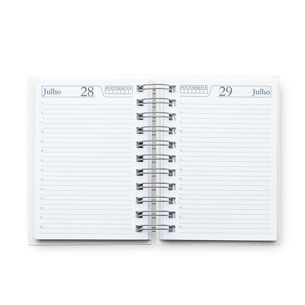Agenda personalizada confeccionada com capa em pet próprio para sublimação possibilitando que esse brinde personalizado receba uma grande e colorida personalização.