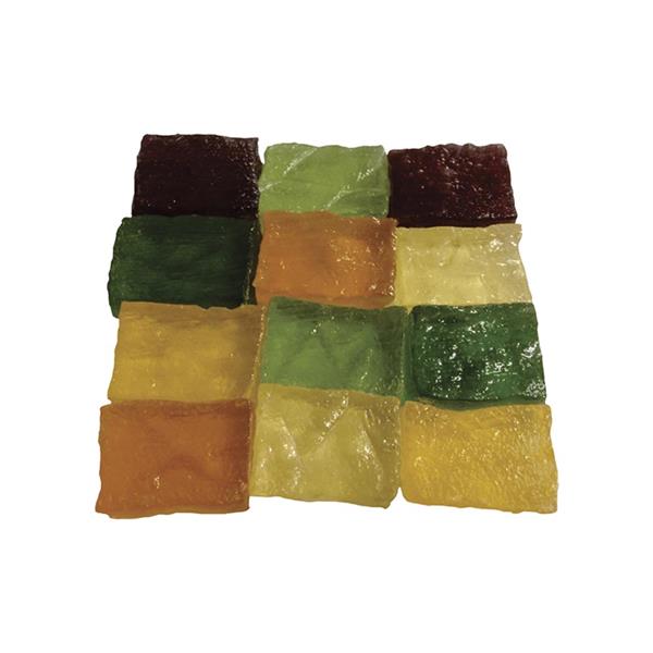 Ingredientes: Agar-agar, glucose de milho, açúcar, orgânico, aroma idêntico ao natural de caroteno, clorofila, urucum e antocianina. Prazo de Validade: 6 meses.