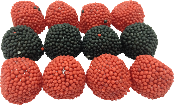 Ingredientes: Xarope de glicose, açúcar, água, amido, gelificantes: gelatina e pectina, acidulante: ácido cítrico, regulador de acides: citrato de sódio, espessante: goma carragena. Aromas idênticos ao natural de morango, amora e framboesa. Prazo de Validade: 1 ano.
