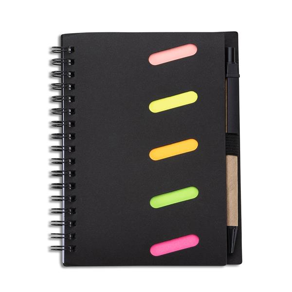 Bloco de anotações ecológico com caneta reciclável e autoadesivos. Capa kraft com detalhes vazados, possui cinco blocos autoadesivos coloridos com aproximadamente 20 folhas, aproximadamente 70 folhas brancas pautadas com símbolo ecol??gico na parte inferior. Acompanha caneta de papelão com detalhes em plástico. Altura : 16 cm Largura : 13 cm Espessura : 1,7 cm Medidas aproximadas para gravação (CxL): Bloco 4,9 cm x 15,7 cm – Caneta 4 cm x 0,7 cm Tamanho total aproximado (CxL): Caneta 14 cm x 1,5 cm